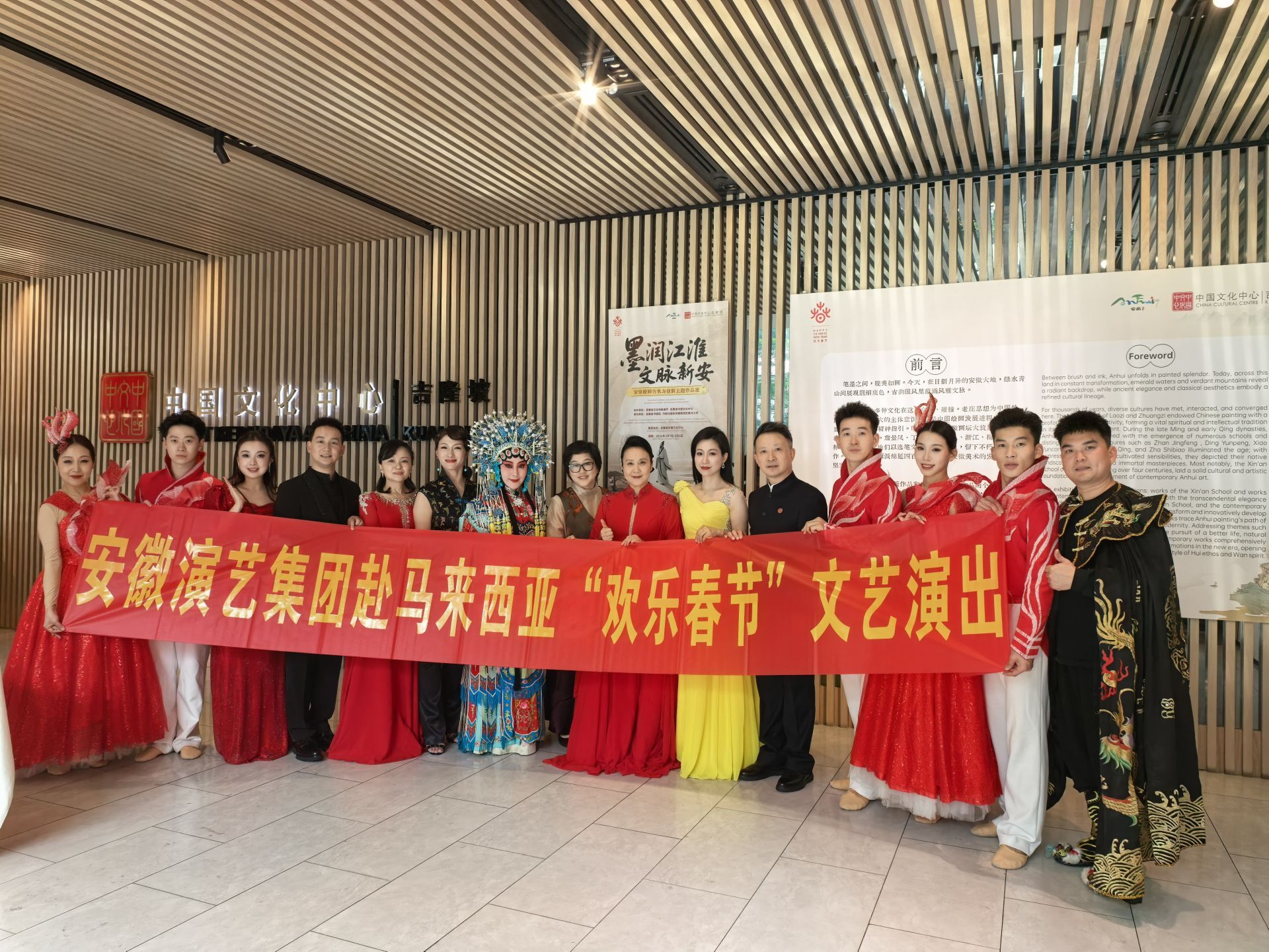 在中华人民共和国驻马来西亚大使馆新春招待会、在吉隆坡中国文化中心、在槟城文旅推介会,演员们克服时间紧张、旅途疲惫等困难,倾情演绎了《让幸福飞起来》《淮水舞韵》《双回门》以及黄梅戏、徽剧经典选段等,赢得全场阵阵掌声。多国嘉宾、海外华侨华人及当地民众齐聚一堂,沉浸式感受到来自江淮大地的文化暖意与新春温情。