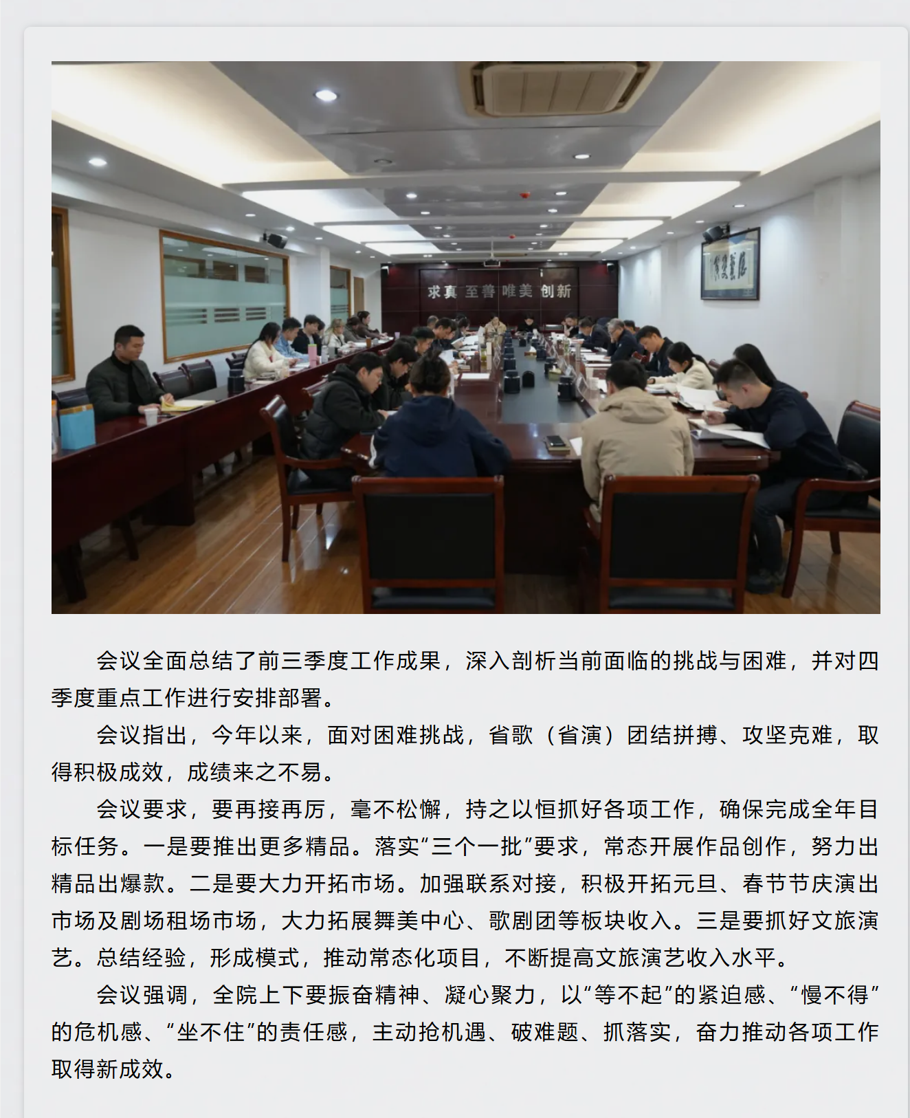 安徽省歌舞剧院(安徽省演出公司)召开三季度经营分析会